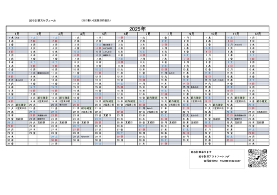 2025年版給与計算カレンダー表を作成しましたので公開いたします。